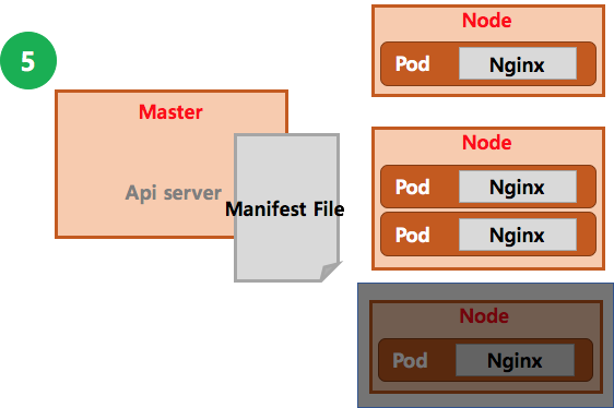 - 선언된 내용대로 Node내에 Pod를 만들어 띄운다.