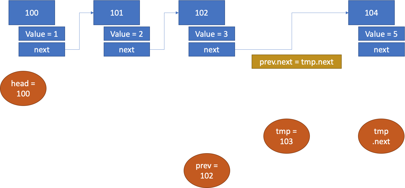 prev.next = tmp.next;